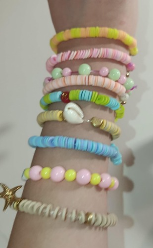 Komplektā ietilpst - pašgatavotas konfektes, vēlējums un rokassprādze no pērlītēm.