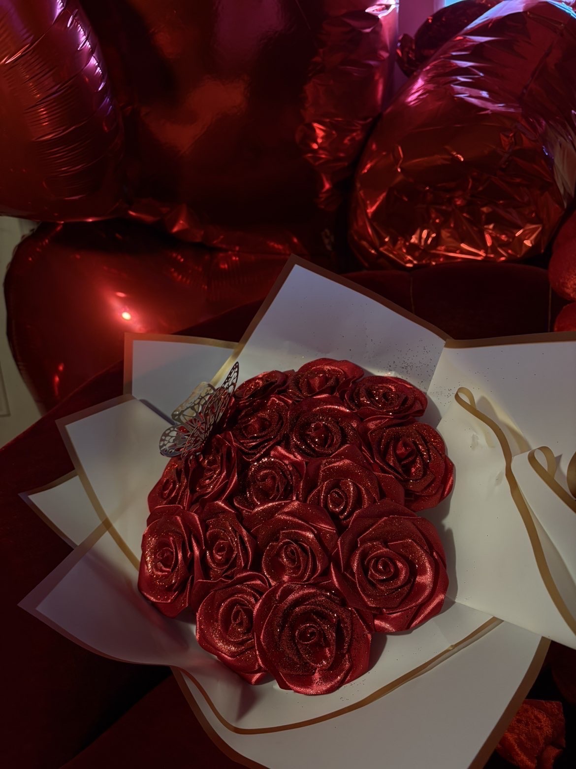 17 gb. sarkanas rozītes ar spīdumiem un taureni.