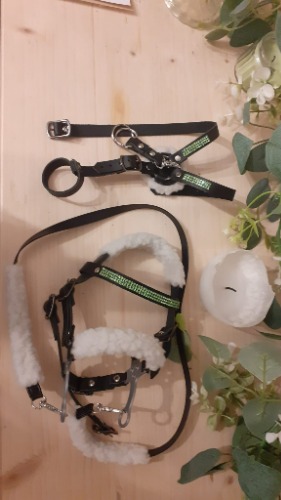 Hakamores iemaukti, pavadas un martingals ar pūciņu.