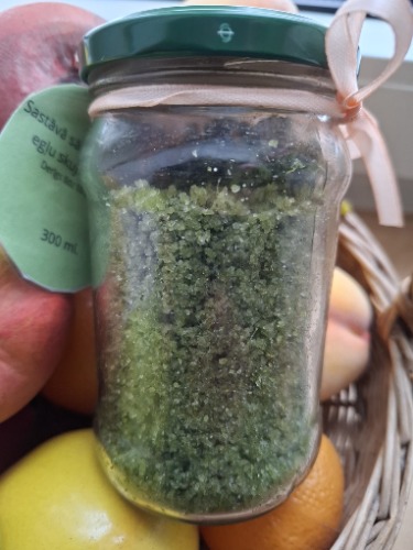 Medus veicina šūnu atjaunošanos un uzlabo ādas tvirtumu, cukurs palīdz nolobīt atmirušās ādas šūnas un uzlabo asinsriti, olīveļļa baro un aizsargā ādu, nodrošinot vienmērīgāku ādas toni, un radīs neaprakstāmi labu sajūtu. E vitamīns ir taukos šķīstošs vitamīns, kurš uzsūcas un uzglabājas cilvēka tauku šūnās. Tas iedarbojas, kā antioksidants, iznīcinot brīvos radikāļus, kuri kaitē šūnām.