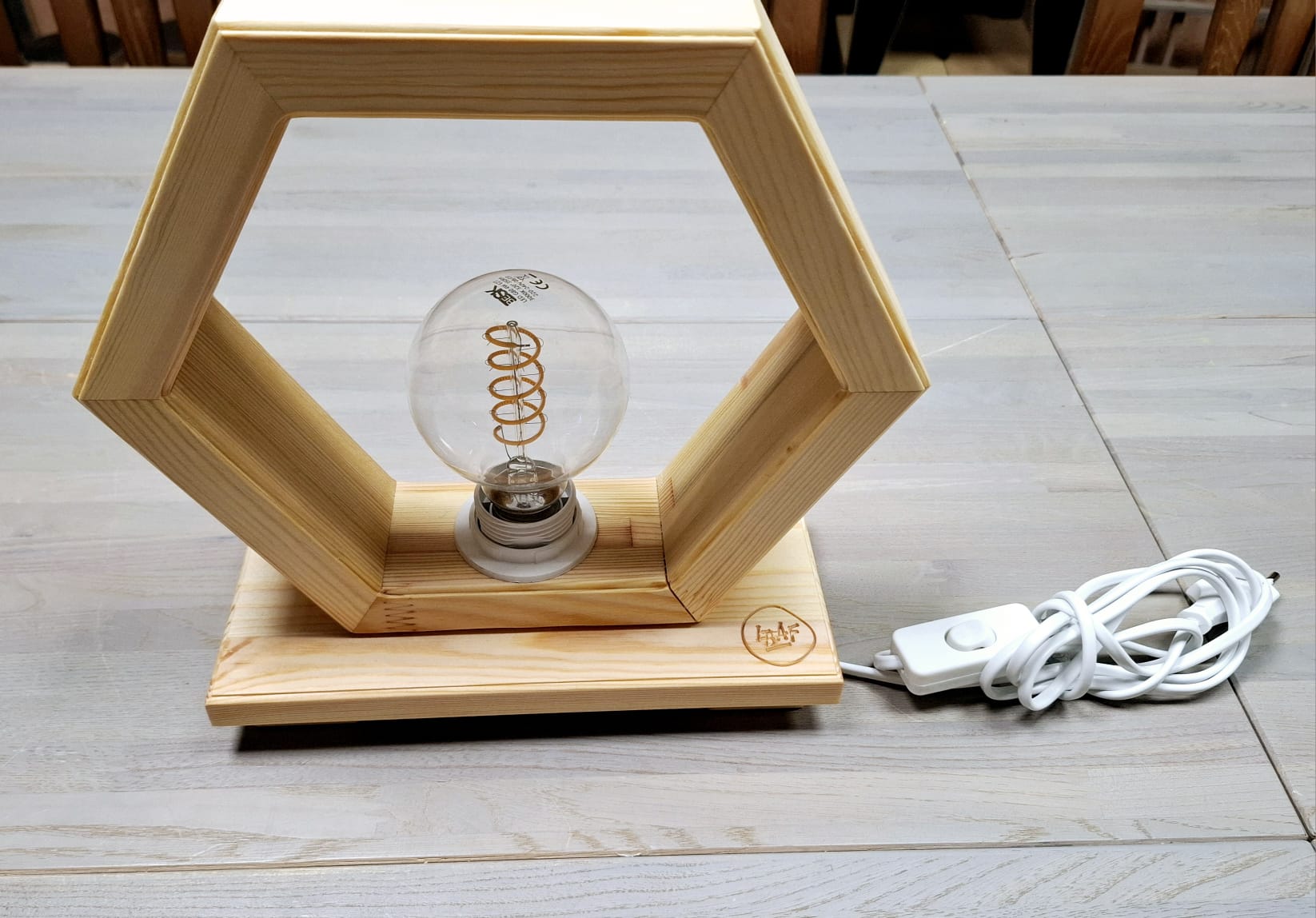 Kvalitatīvi veidota galda lampa. 100% roku darbs.