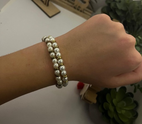 Balto pērļu rokassprādzes
